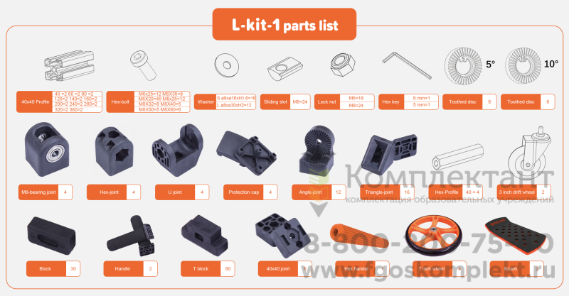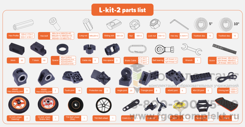 Получите увлекательный опыт вместе со своими детьми, строя разные средства передвижения. Все комплекты DOCYKE полностью совместимы между собой. А детали конструктора выполнены из материалов с повышенной устойчивостью к нагрузкам. Максимально допустимая нагрузка зависит от типа конструктора, для DOCYKE L-KIT - 50кг. Не менее 60 вариантов сборки, количество ограничивает только ваша фантазия. Конструктор DOCYKE объединит всю семью созданием необычного транспорта. В комплект входят соединители, алюминиевые профили, винты и 4 колеса диаметром 20 см.